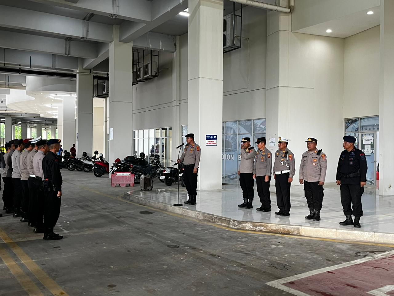 Pihak kepolisian menerapkan pola pengamanan berlapis guna memastikan jalannya pertandingan tetap kondusif. Personel Brimob disiagakan di berbagai titik strategis, mulai dari gerbang masuk stadion, area tribun, hingga akses keluar-masuk pemain dan ofisial tim.