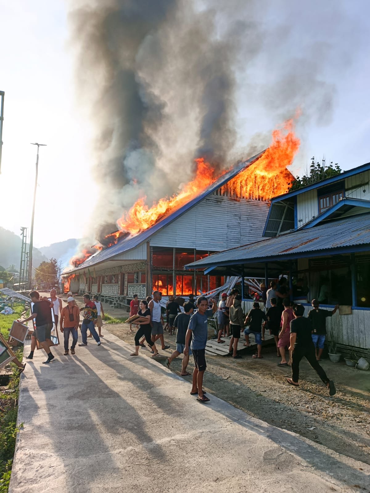 “Api awalnya terlihat dari salah satu rumah yang sudah lama tidak dihuni. Karena kondisi bangunan kayu dan cuaca kering, api dengan cepat membesar dan merembet ke bangunan lain,” jelas Aipda Hadi.