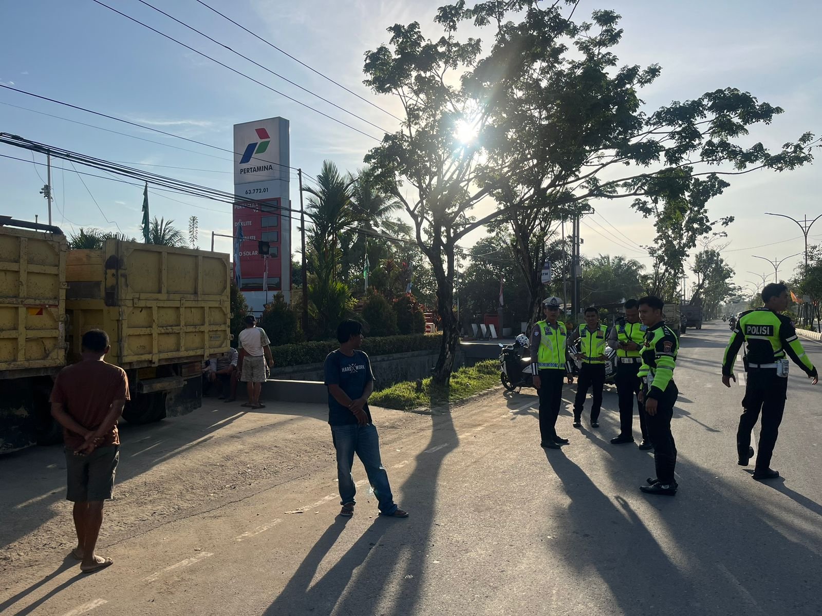 “Petugas melakukan pengaturan lalu lintas serta sambang kepada pengemudi truk agar antrean tidak mengganggu arus kendaraan dan mencegah terjadinya kecelakaan,” ujarnya.