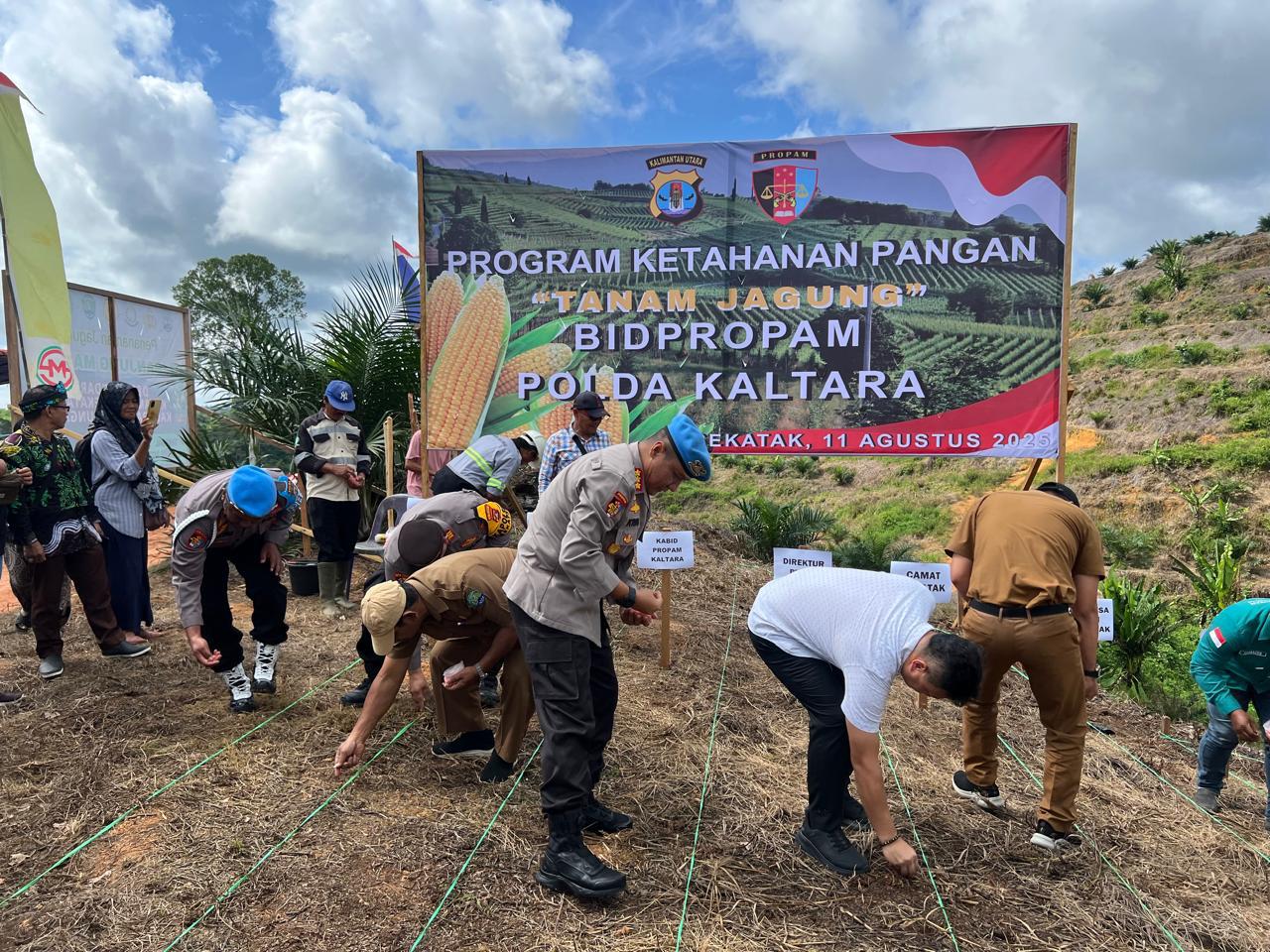 BULUNGAN, Headlinews.id – Bidang Profesi dan Pengamanan (Bidpropam) Polda Kalimantan Utara menggelar program ketahanan pangan dengan menanam jagung di lahan seluas 10 hektar di Desa Kendari, Kecamatan Sekatak, Kabupaten Bulungan. Kegiatan ini dilaksanakan sebagai wujud dukungan terhadap program swasembada pangan tahun 2025 yang dicanangkan pemerintah.