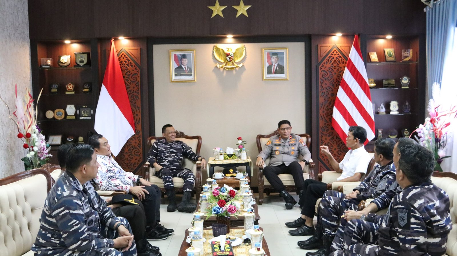 TARAKAN, Headlinews.id – Kepala Kepolisian Daerah Kalimantan Utara Brigjen Pol. Djati Wiyoto Abadhy S.I.K., melakukan kunjungan kerja perdana ke Komando Daerah Angkatan Laut (Kodaeral) XIII Tarakan pada Selasa, 2 September 2025. Kedatangan Kapolda disambut langsung oleh Komandan Kodaeral (Dankodaeral) XIII Tarakan Laksamana Muda TNI Phundi Rusbandi, beserta jajaran pejabat tinggi lainnya.