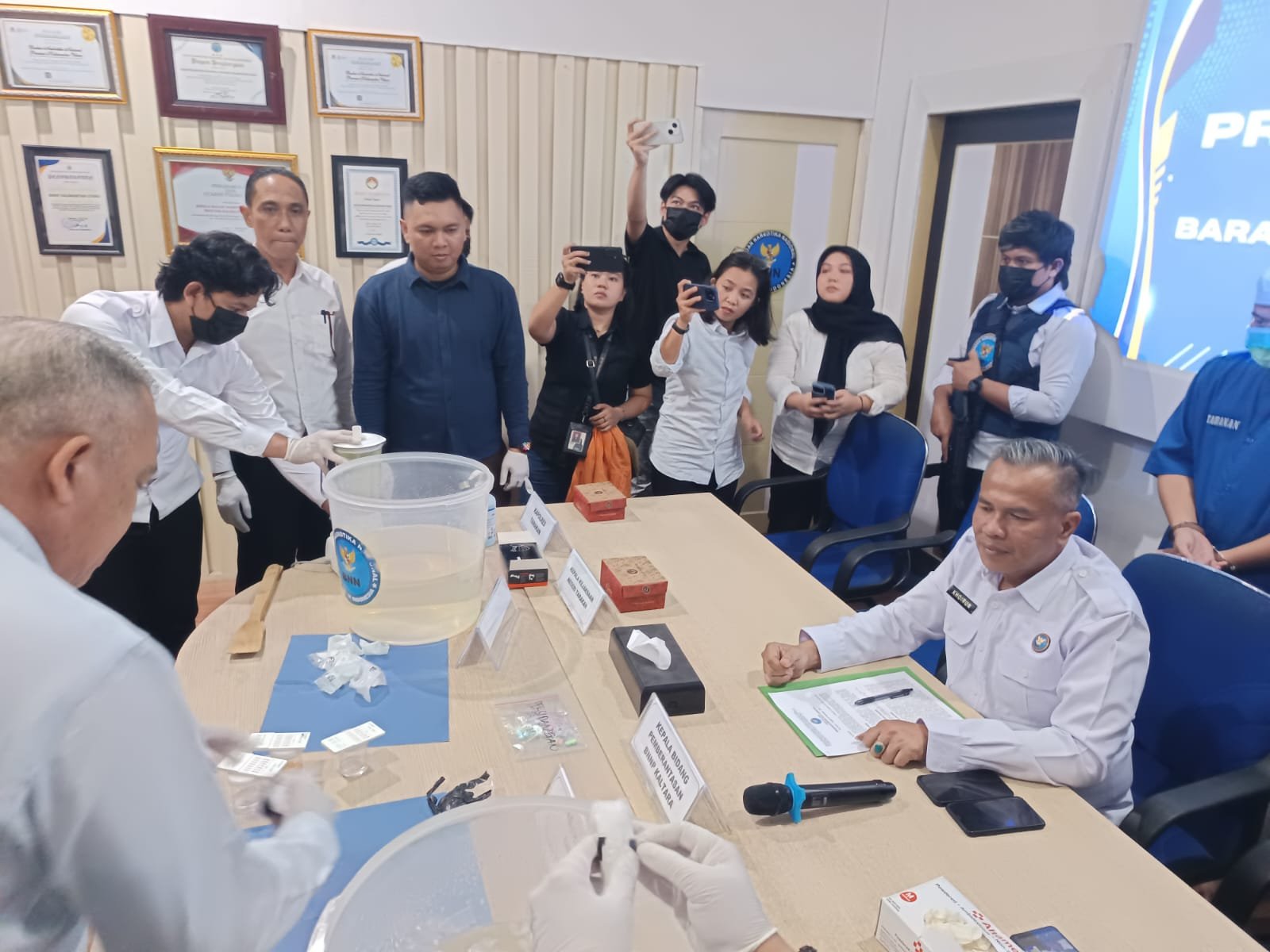 Dari total sabu seberat bruto 708,77 gram, petugas menyisihkan masing-masing 0,7 gram untuk keperluan pemeriksaan laboratorium dan pembuktian di persidangan. Dengan demikian, sabu yang dimusnahkan berjumlah 707,37 gram. Sementara dari 597 butir ekstasi, sebanyak 21 butir disisihkan untuk kepentingan laboratorium.