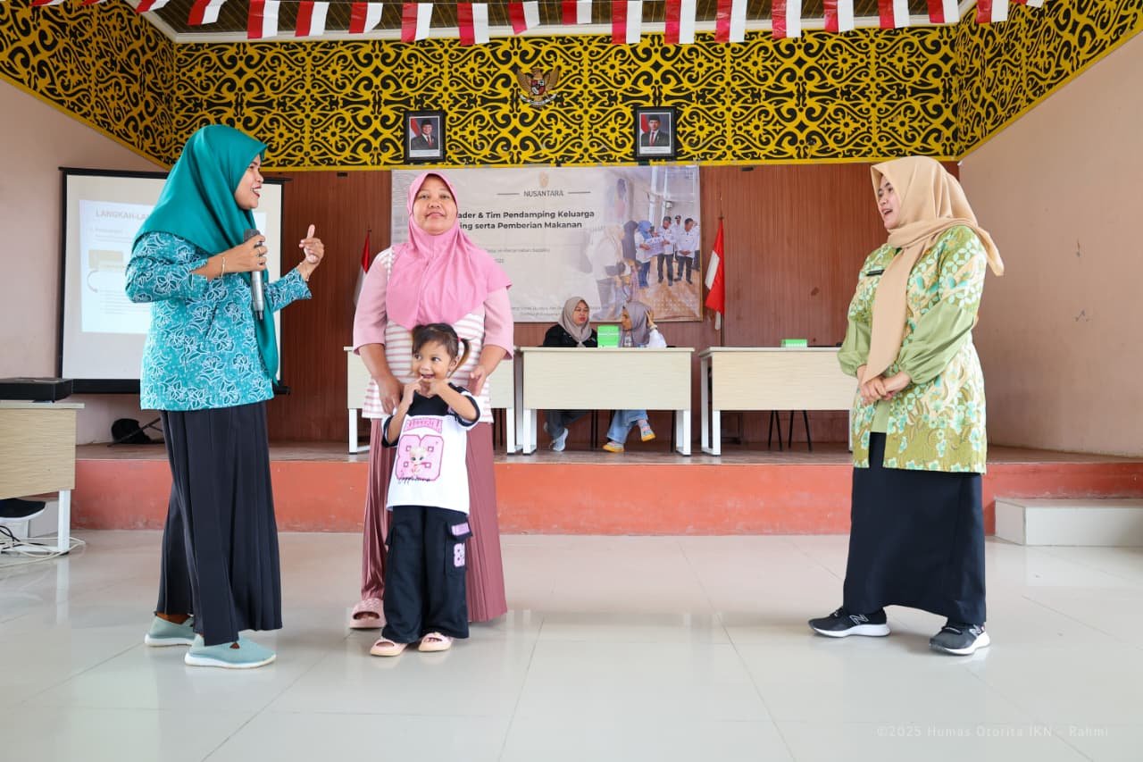 NUSANTARA, Headlinews.id — Otorita Ibu Kota Nusantara (IKN) memperkuat upaya pencegahan stunting bagi calon ibu dan keluarga rentan melalui pelatihan kader dan tim pendamping keluarga risiko stunting, sekaligus pemberian makanan tinggi protein, di Balai Desa Tengin Baru, Kecamatan Sepaku, Kamis (06/11/2025).