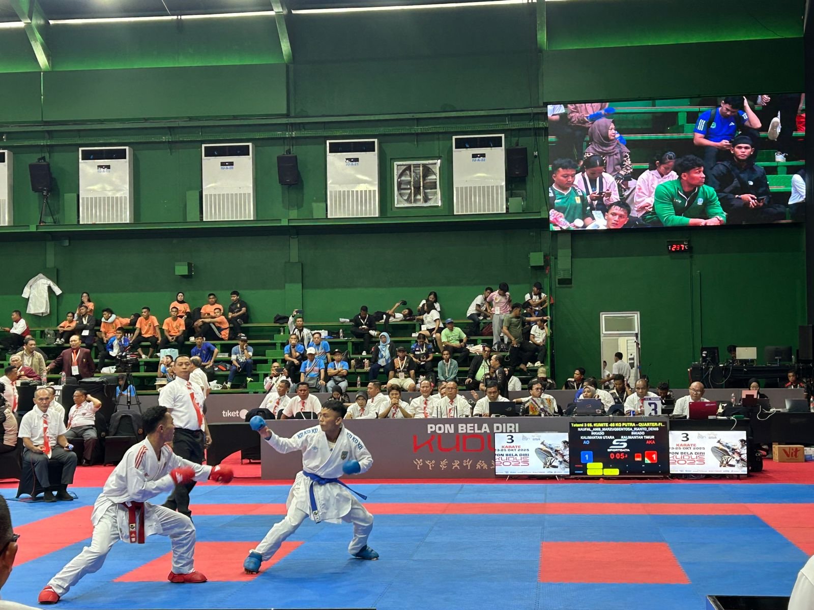 KUDUS, Headlinews.id– Duel ketat antara karateka Kalimantan Utara (Kaltara) Naufal Anis Marzuq dan atlet Kalimantan Timur (Kaltim) Sentosa Rianto menjadi salah satu pertandingan paling menegangkan di cabang olahraga karate PON Bela Diri 2025.
