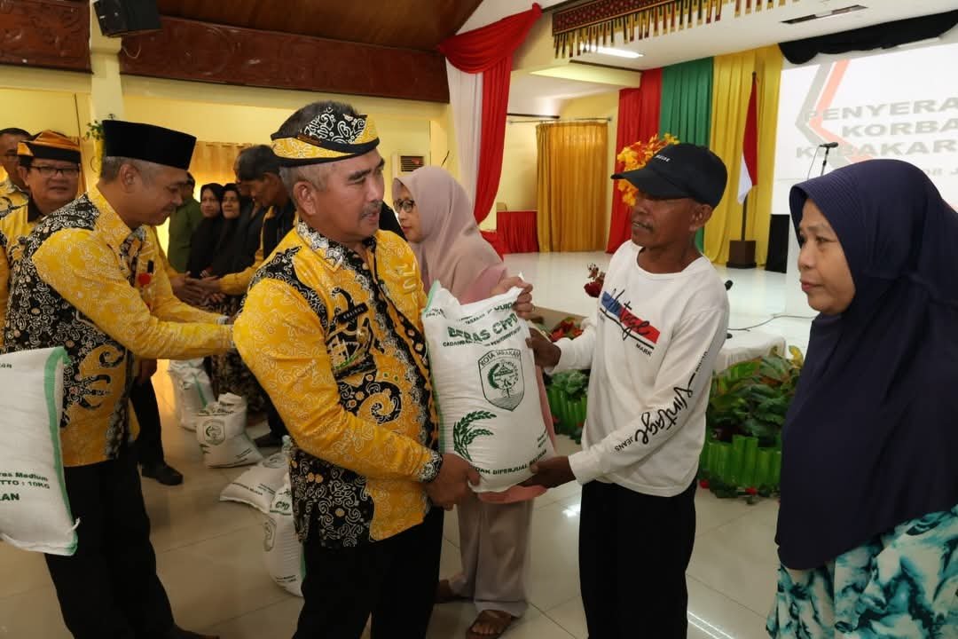 “Saya menyampaikan terima kasih kepada seluruh perangkat daerah, BPBD, Dinas Sosial, Dinas Ketahanan Pangan dan Pertanian, serta Perum Bulog yang telah bekerja sama sehingga penyaluran bantuan ini dapat berjalan tertib dan tepat sasaran,” tutup Khairul. (*)