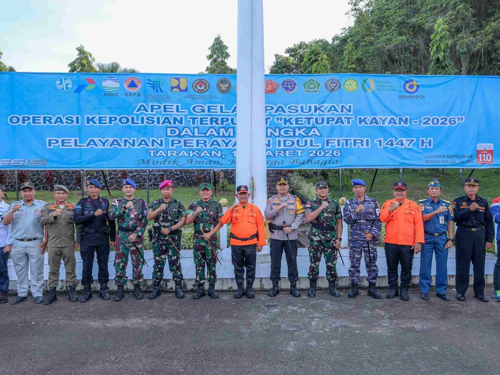 TARAKAN, Headlinews.id – Sinergi TNI dan Polri dalam menjaga keamanan arus mudik dan perayaan Idulfitri kembali diperkuat melalui Apel Gelar Pasukan Operasi Ketupat Kayan 2026 yang digelar di halaman parkir Rumah Jabatan Wali Kota Tarakan, Kamis (12/3/2026).